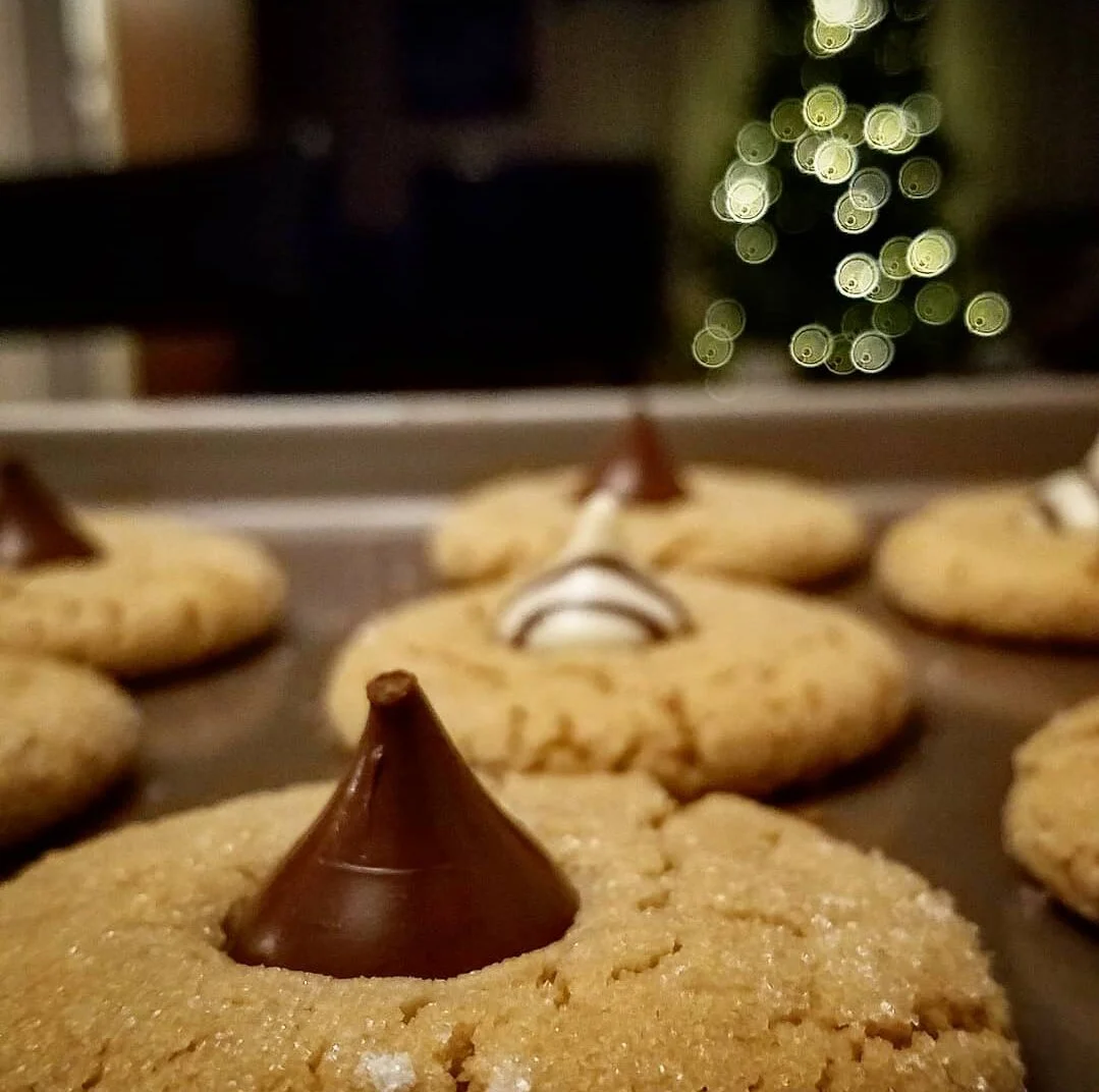 Bake 9 to 10 minutes or until light golden brown and crackly. Cool about 2 minutes and press the chocolate drops into the center of each cookie. Remove from cookie sheet and cool fully on wire rack. Enjoy!